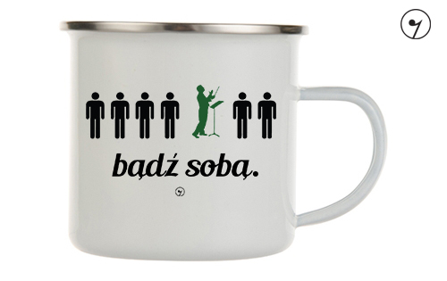 Zawsze bądź sobą - Dyrygent. Kubek metalowy, emaliowany z uszkiem.