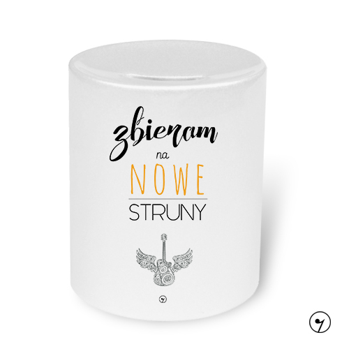 Biała, ceramiczna skarbonka, dla zbierających na struny.