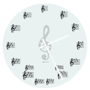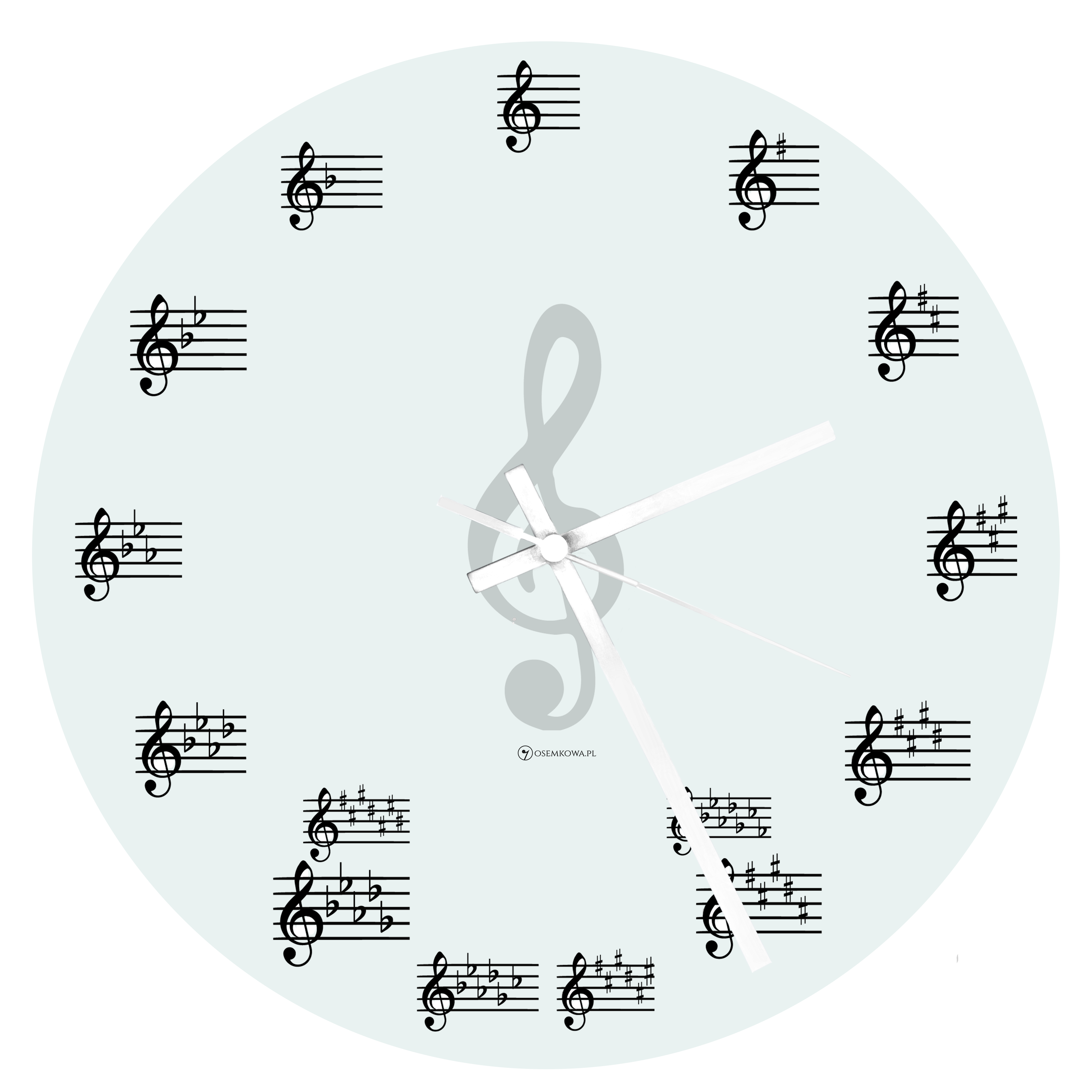 Zegar szklany z kołem kwintowym. Prezent dla muzyka.